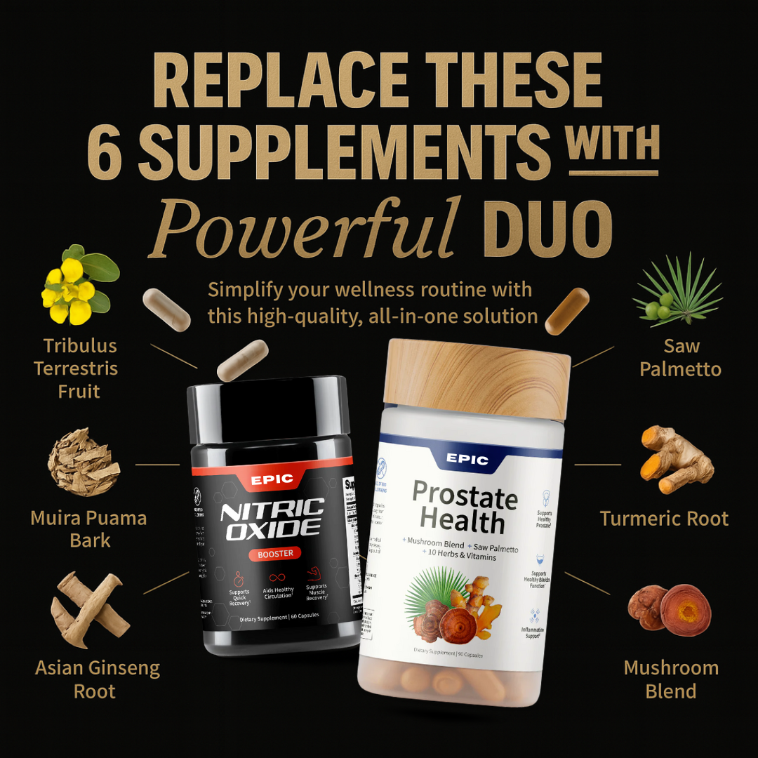 The Fix? Blood flow + prostate support. That’s why EPIC Vitals combines Nitric Oxide Booster + Prostate Health in one daily stack.